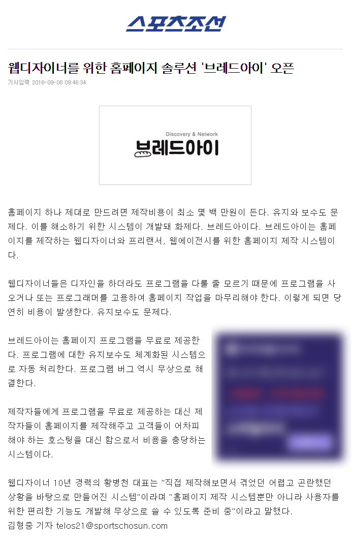 홈페이지 하나 제대로 만드려면 제작비용이 최소 몇 백 만원이 든다. 유지와 보수도 문제다. 이를 해소하기 위한 시스템이 개발돼 화제다. 브레드아이다.