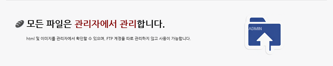 html 및 이미지를 관리자에서 확인할 수 있으며, FTP 계정을 따로 관리하지 않고 사용이 가능합니다.